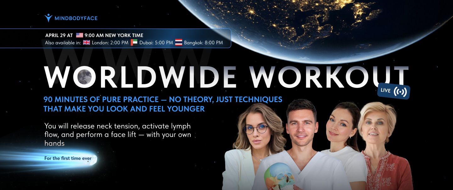 twice a week — yoga for the body, and four times a week — face massage and face lifting practices. This is a complete program that never repeats, because we record new classes daily — so there’s always something new waiting for you